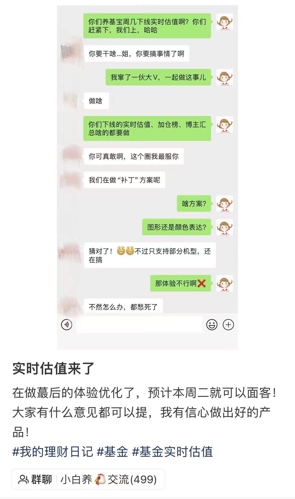 “实时估值、加仓榜、博主汇总都要做。”在小红书平台上,一位博主自2月1日以来,连续发布了多篇分享基金实时估值工具开发进展的内容。