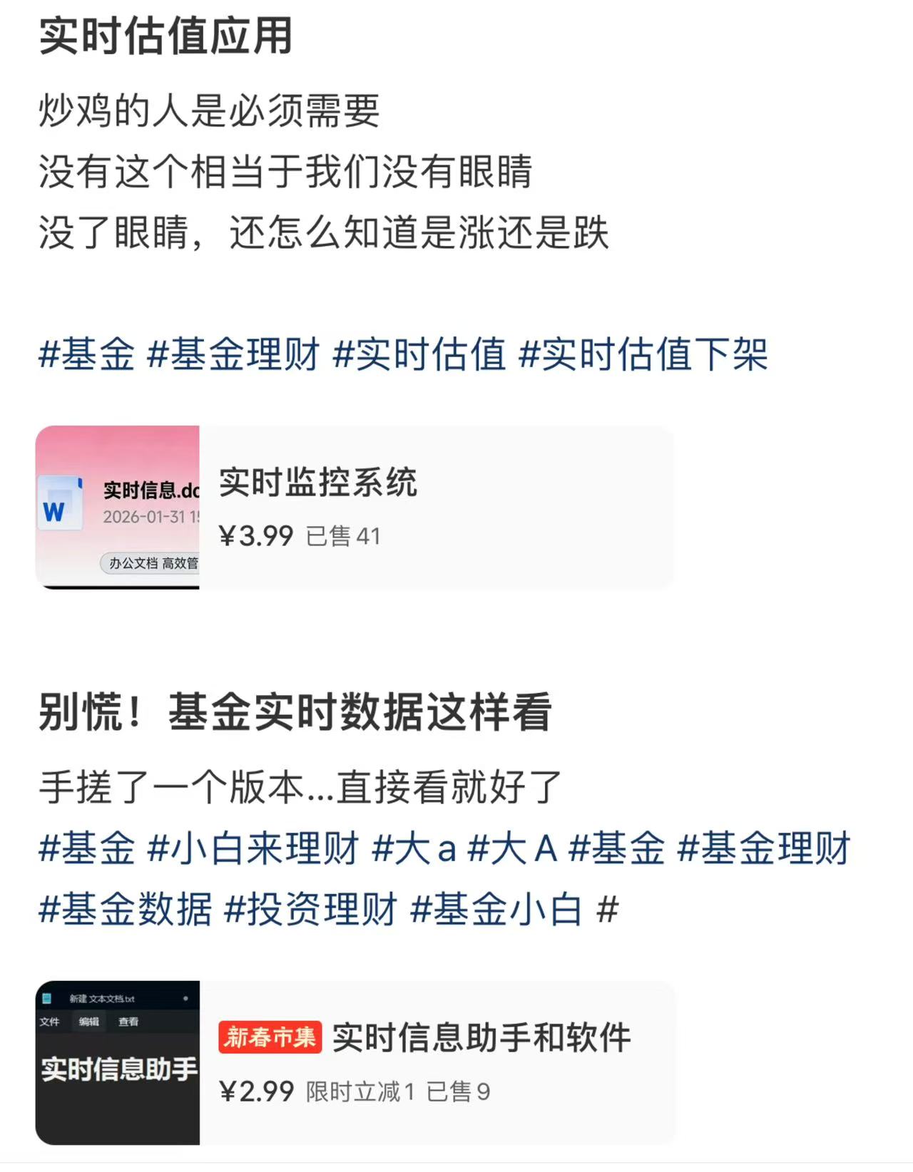 也有博主选择更“一步到位”地将流量变现。记者发现,已有部分自媒体账号直接挂出了基金实时估值软件的购买链接,售价在数元到十余元不等。