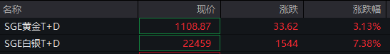 国内市场方面,3日夜盘,上期所沪银主力合约涨超8%,沪金主力合约涨超4%;上海黄金交易所SGE黄金T+D涨超3%,SGE白银T+D涨超7%。