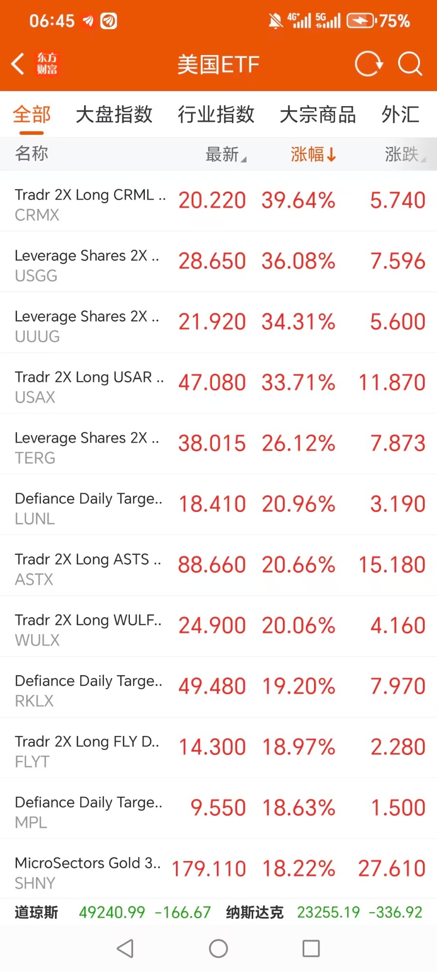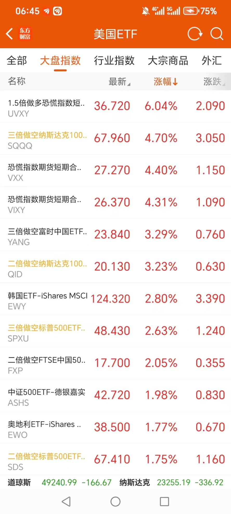 美股大型指数ETF升幅榜Top5