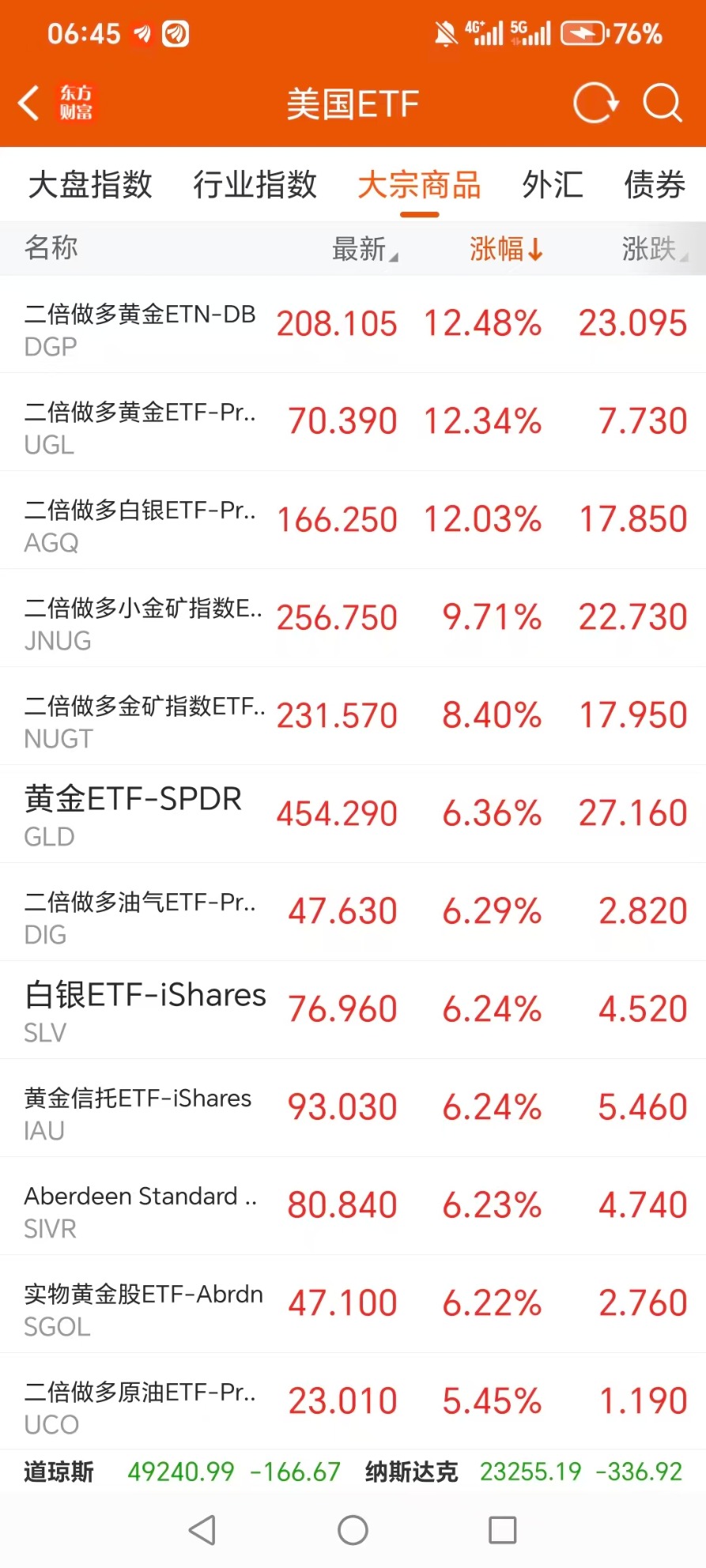 大宗商品型ETF升幅榜Top5