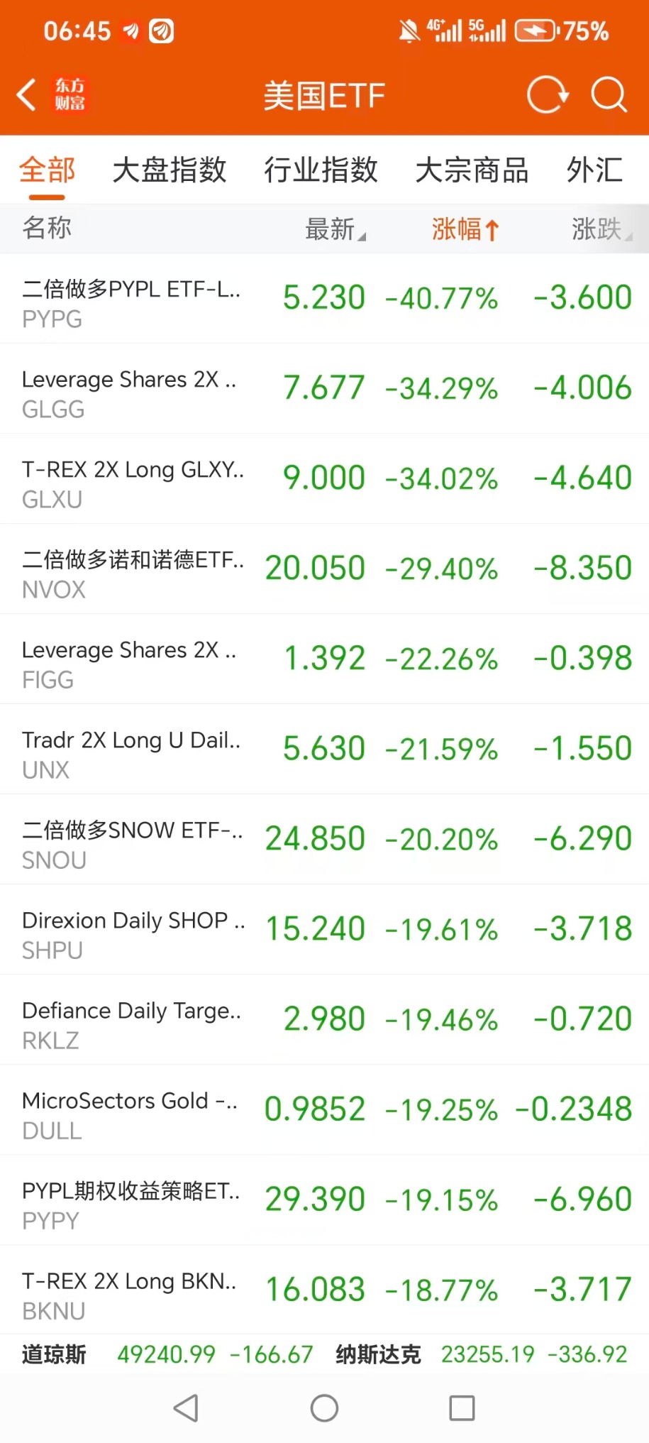 美股ETF跌幅榜Top5