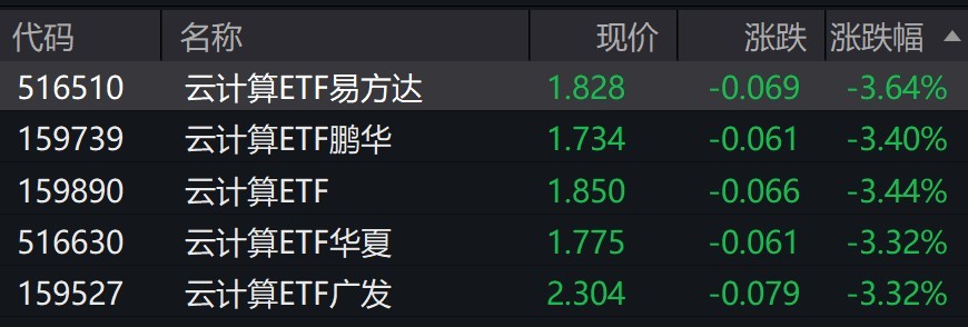 受重仓股下跌影响,云计算相关ETF跌超3%。