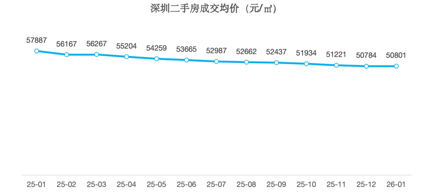除了政策外力,市场自身价格体系的深度调整,是吸引买家入市的根本内因。据深圳贝壳研究院监测,1月份深圳二手房成交均价为50801元/平方米,环比保持稳定,其中少量优质、高端物业成交扩大,结构性小幅拉升均价。