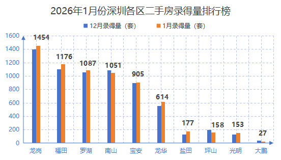 深圳1月份各区二手房录得量排行榜图源:深圳市房地产中介协会