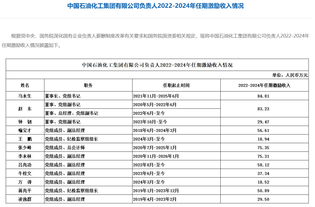 87家央企负责人激励收入公开!2022—2024年中石油董事长86.21万元、中石化董事长84.81万元、东方电气总经理65.26万元……