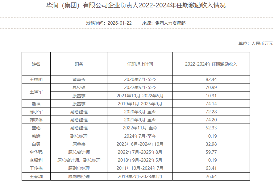 2月3日,国务院国资委网站披露中央企业负责人2022—2024年任期激励收入,按照中央企业负责人薪酬管理有关规定,中央企业负责人薪酬总收入由年度薪酬和任期激励收入构成,其中,任期激励收入每三年发放一次。