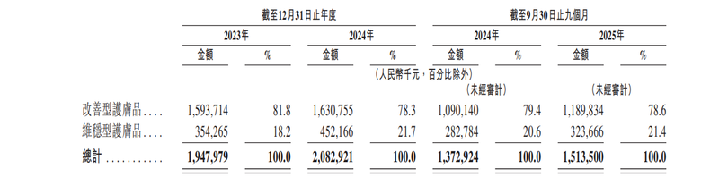 根据不同护肤功效,HBN旗下护肤品分为改善型、维稳型两大类。灼识咨询报告显示,以2024年改善型护肤品的零售额计算,HBN是中国最大的皮肤学级国产护肤品牌。