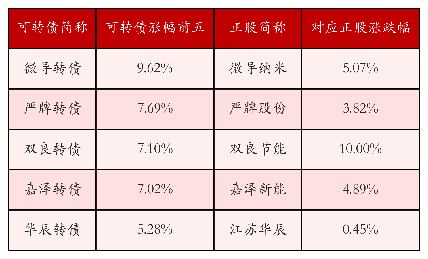 南财智讯2月4日电,盘后数据显示,债市方面,中证转债指数收跌0.04%,报521.27,成交额为849.68亿元。可转债方面,今日共成交373只可转债,其中182只收涨,0只收平,191只收跌。具体来看,20只可转债涨幅超过2%。其中微导转债(118058)涨9.62%,严牌转债(123243)涨7.69%,双良转债(110095)涨7.1%。今日有52只可转债跌幅超2%,奥飞转债(123131)跌16.77%,鼎捷转债(123263)跌13.1%,耐普转02(123265)跌12.92%。存在交易量的可转债所对应的正股中,243只收涨,6只收平,124只收跌。具体来看,26只可转债对应正股涨幅超过5%,其中,晶科能源(688223)涨停,收涨20.0%;山东赫达(002810)涨停,收涨10.02%;银轮股份(002126)涨停,收涨10.01%。同时所对应的可转债:晶能转债(118034)同涨4.79%;赫达转债(127088)同涨4.37%;银轮转债(127037)同涨2.11%。今日有7只可转债对应正股跌幅超过5%,没有正股跌停。