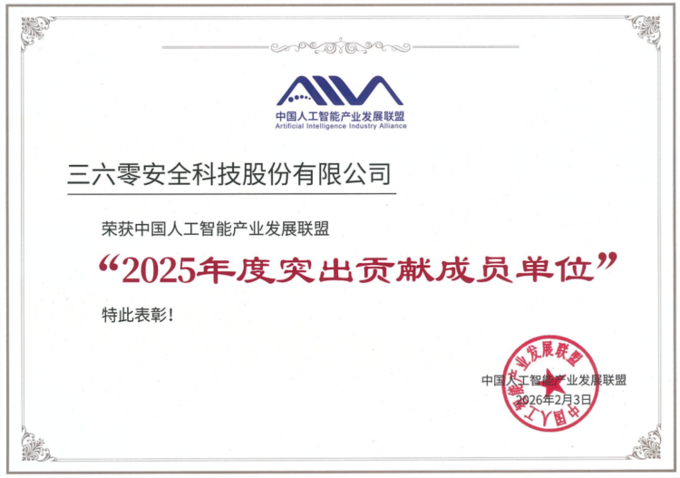 近日,中国人工智能产业发展联盟第十六次全体会议在北京召开。会上,三六零集团(601360.SH,下称“三六零”)凭借在人工智能技术创新、产业落地与安全治理等方面的系统性贡献,荣获“2025年度突出贡献成员单位”称号。该荣誉充分肯定了三六零在推动“人工智能+”行动纵深落地、加速人工智能与实体经济深度融合中的先锋与引领作用。