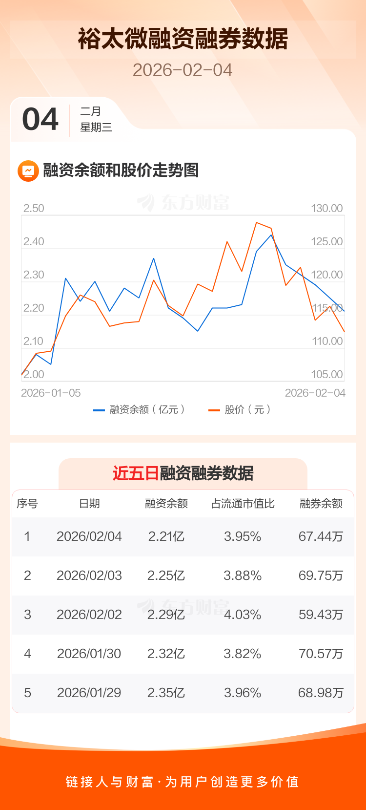 交易所最新数据显示,裕太微于2026年2月4日获融资买入1136.04万元,融资偿还1533.53万元,当日融资净偿还397.49万元。目前,该股融资余额2.21亿,占流通市值比例为3.95%。