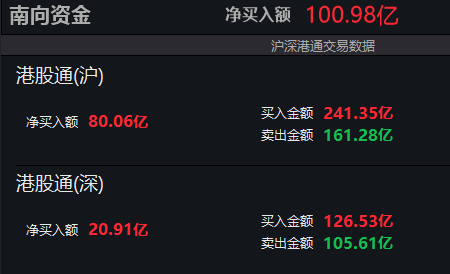 南向资金净买入超100亿港元