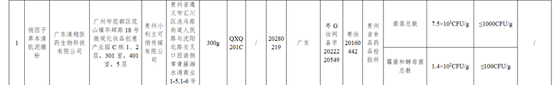例如,俏因子草本清肌泥膜粉的菌落总数检验结果为7.5×10³CFU/g;俏因子草本美肌焕颜泥膜粉的菌落总数检验结果为2.1×10³CFU/g;Felshell白术三七面膜粉的菌落总数检验结果为2.8×10CFU/g;俏柔生姜清爽健发洗发乳的菌落总数检验结果为1500000CFU/ml;COOX念香晚樱氨基酸护发素的菌落总数检验结果为1.8×10CFU/g;Niepoth沐浴露(福建白茶)的菌落总数检验结果为7.2×10CFU/g;丝维雅草本润肤露的菌落总数检验结果为46000CFU/g。
