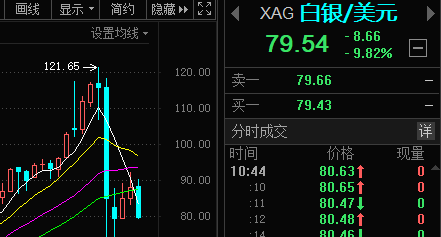 2月5日盘中,现货白银跌破80美元/盎司,日内跌近10%。
