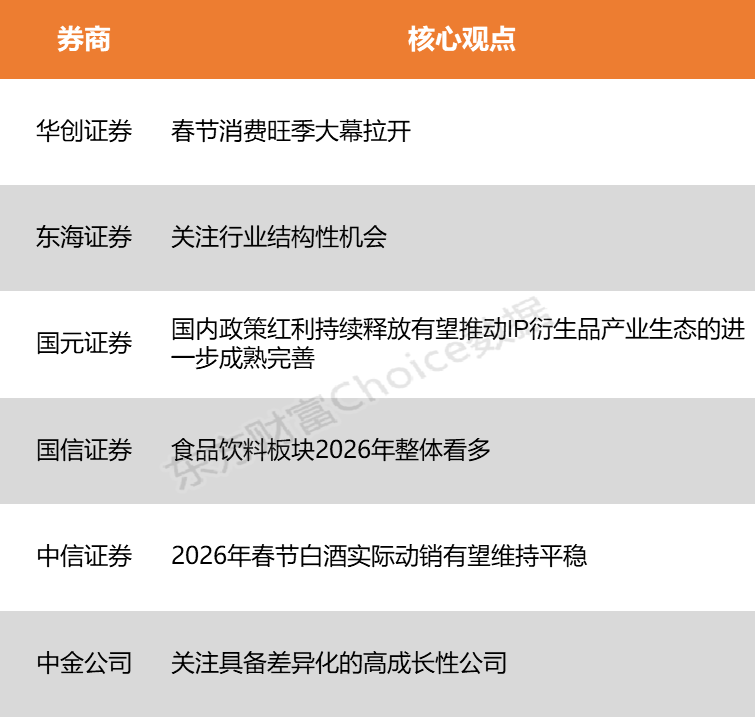 华创证券表示,春节消费旺季大幕拉开,各地促消费政策密集出台,为全年消费市场的“开门红”注入强劲动力。东海证券指出,在扩内需政策下,消费潜力不断释放,渠道变革引领新需求,关注行业结构性机会。