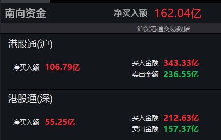 上证报中国证券网讯 2月5日15时20分,南向资金净买入超160亿港元,达到162.04亿港元。