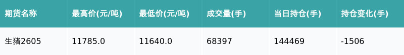 生猪主力合约收跌0.09%