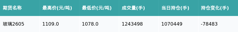 南财智讯2月5日电,盘后期货数据显示,郑州商品交易所的玻璃主力合约收跌1.36%,收盘报1088.0元/吨,日内资金流出4.38亿元。其他相关指标见下表: