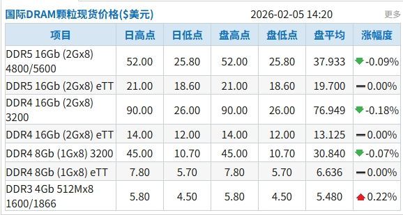 机构:DDR4和DDR5部分颗粒延续小幅下跌