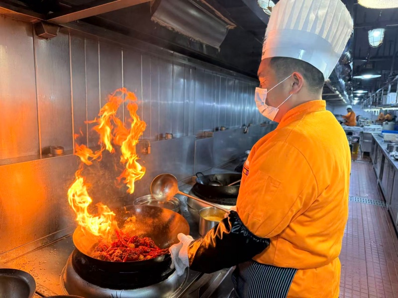 厨师正在烹饪油焖大虾。人民网记者张隽摄
