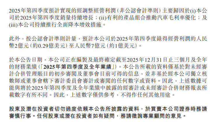 蔚来指出,2025年第四季度预计实现的经调整经营利润(非公认会计准则)主要归因于: