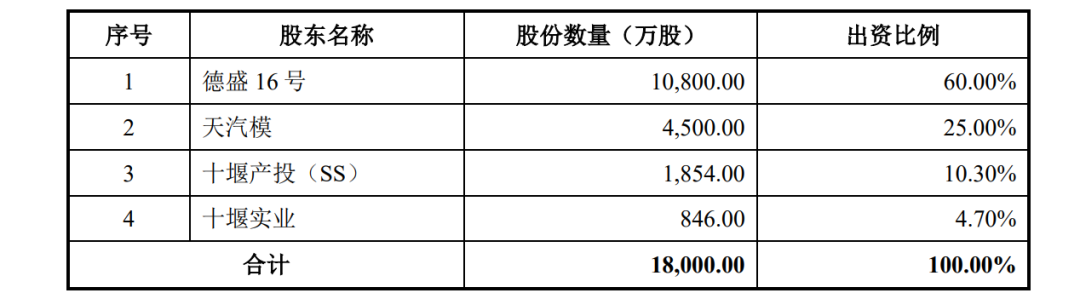 招股书显示,东实股份前身为东风公司厂办集体企业,2017年经历了企业改制。截至招股书披露日,东实股份共有4名股东,分别为德盛16号、天汽模、十堰产投(SS)、十堰实业,其中,德盛16号为公司员工持股平台,持有公司60%股份。