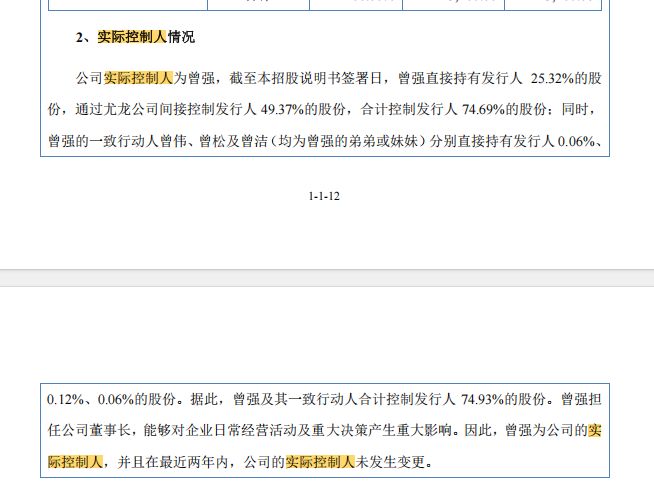 凯龙洁能是一家典型的家族企业。公司实际控制人曾强通过直接和间接方式合计控制着发行人74.69%的股份。若算上其弟弟或妹妹曾伟、曾松、曾洁等一致行动人,曾氏家族掌控的股权比例高达74.93%。这种“一股独大”的格局下,身兼董事长的曾强对企业经营拥有绝对话语权。