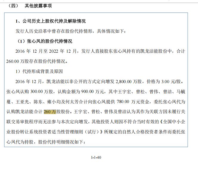 凯龙洁能股权结构的复杂性还体现在历史上的“代持”问题上。2016年的一次定向增发中,出现了明显的股份代持现象。例如,自然人张心凤认购的300万股中,有260万股系代曾伟、曾松等9人持有。代持原因包括关联方为规避审批程序,以及其他投资人不符合当时新三板合格投资者条件。