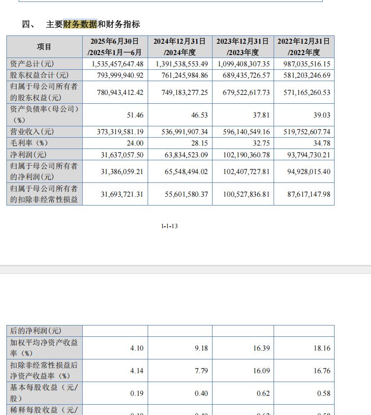 然而,这一核心业务正经历剧烈波动。2022年至2024年,公司营收在5.20亿元至5.96亿元间震荡,归母净利润却经历巨大波动:从9492.8万元攀升至1.02亿元后,2024年骤降至6554.85万元,同比下滑36%;2024年扣非净利润降幅更是高达44.69%。