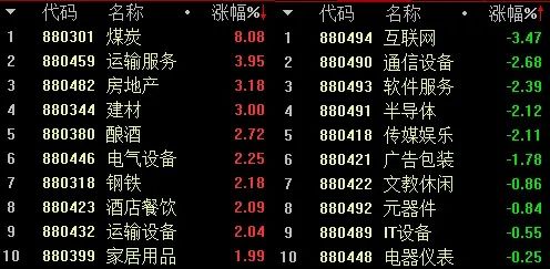 1.涨幅前十的板块,今天换了大部分;而跌幅前十的板块也换了不少。