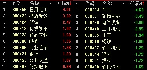 下图是今天涨跌幅位居前十的板块。