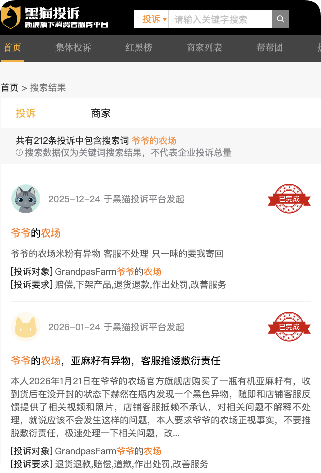 在黑猫投诉平台,相关投诉超过200条,多集中在异物、变质等基础安全问题。