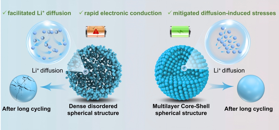 图片说明:新型电极材料结构同步实现内部应力缓解与锂快速传输。