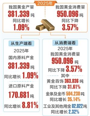 时报数说 | 2025年我国黄金产量同比微增 消费量同比下降