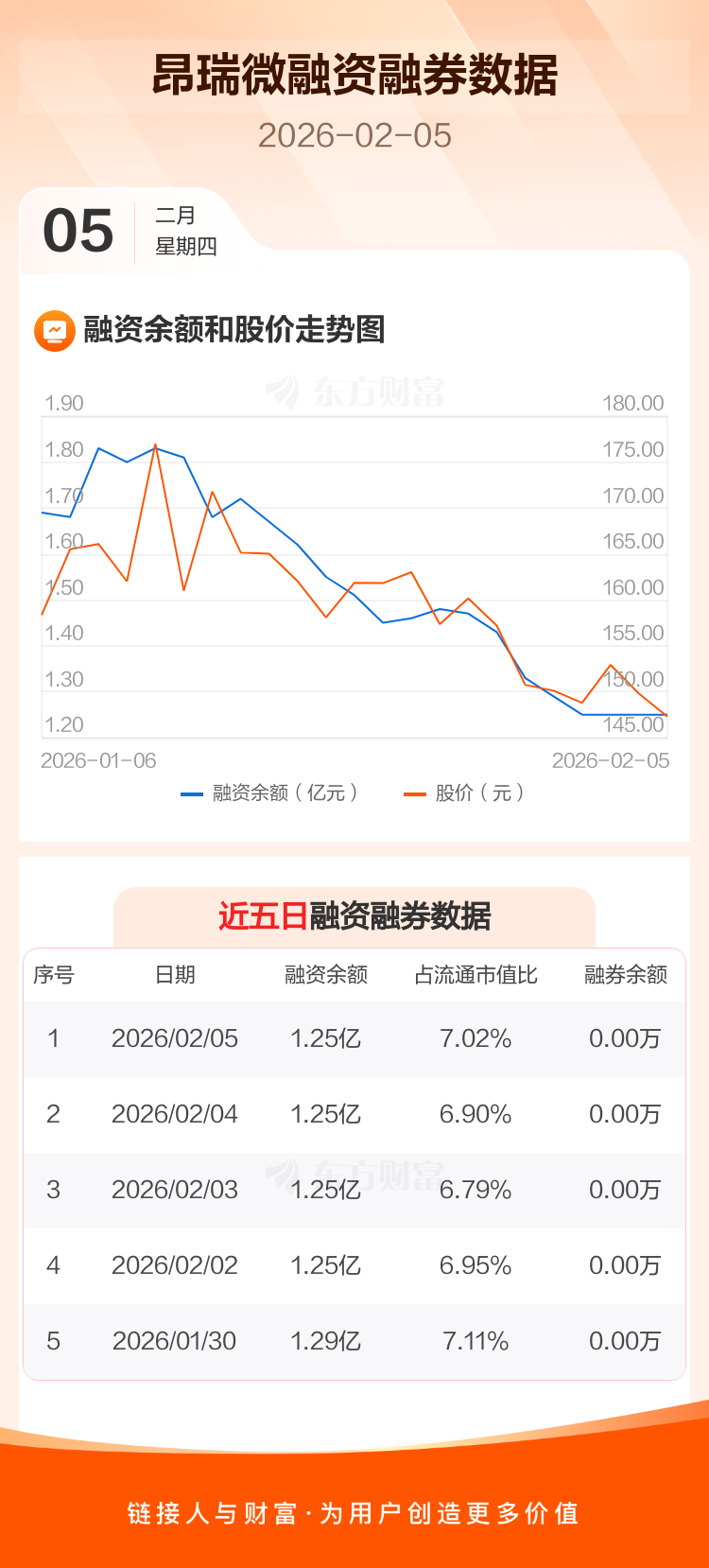 交易所最新数据显示,昂瑞微于2026年2月5日获融资买入602.37万元,融资偿还595.81万元,当日融资净买入6.56万元。目前,该股融资余额1.25亿,占流通市值比例为7.02%。
