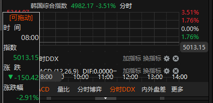 上证报中国证券网讯 2月6日,日韩股市开盘齐跌。日经225指数开盘跌0.71%,报53435.37点;韩国综合指数跌2.91%,报5013.15点。