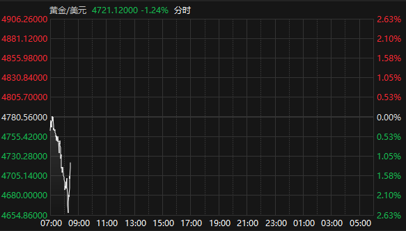 国际现货黄金延续跌势 一度失守4700美元/盎司关口