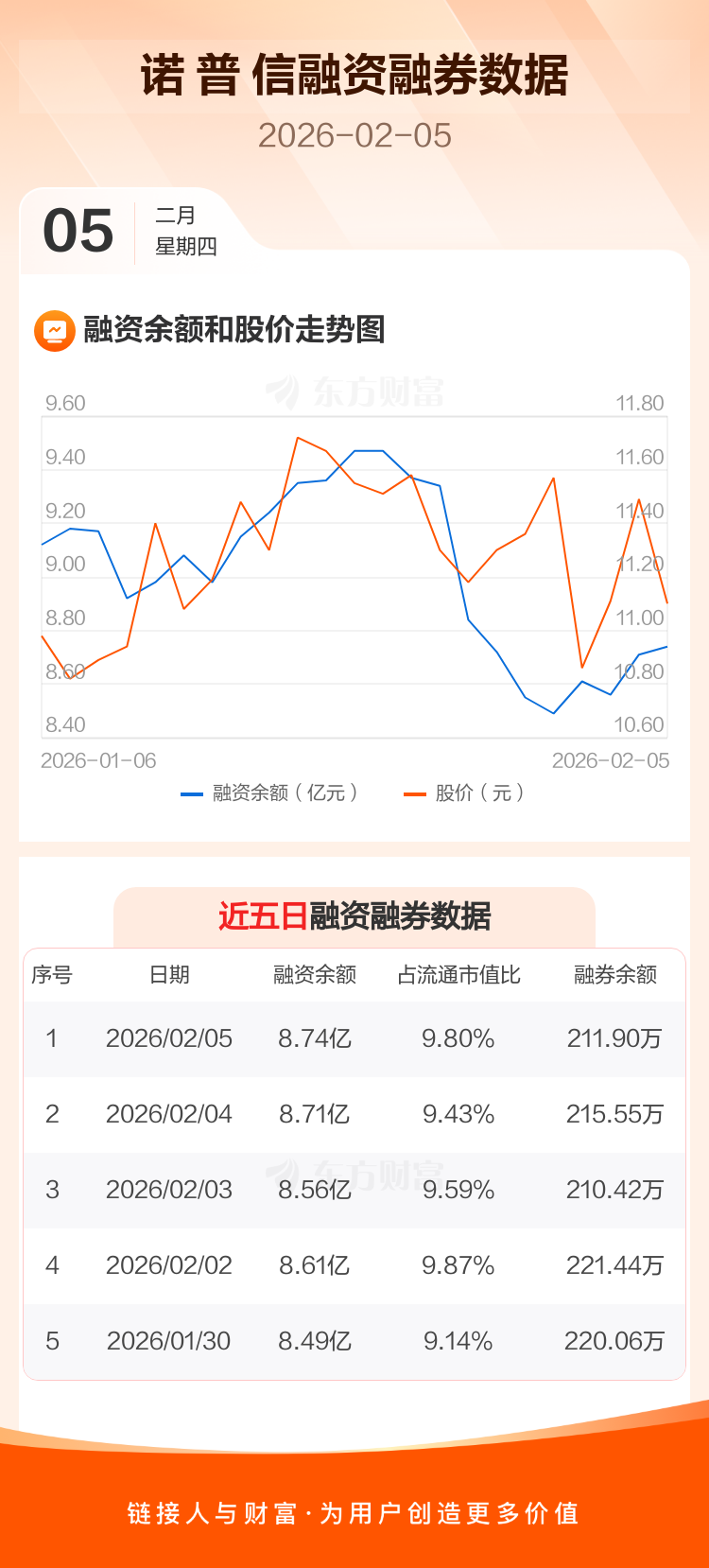 交易所最新数据显示,诺 普 信于2026年2月5日获融资买入3334.19万元,融资偿还3021.47万元,当日融资净买入312.72万元。目前,该股融资余额8.74亿,占流通市值比例为9.80%。