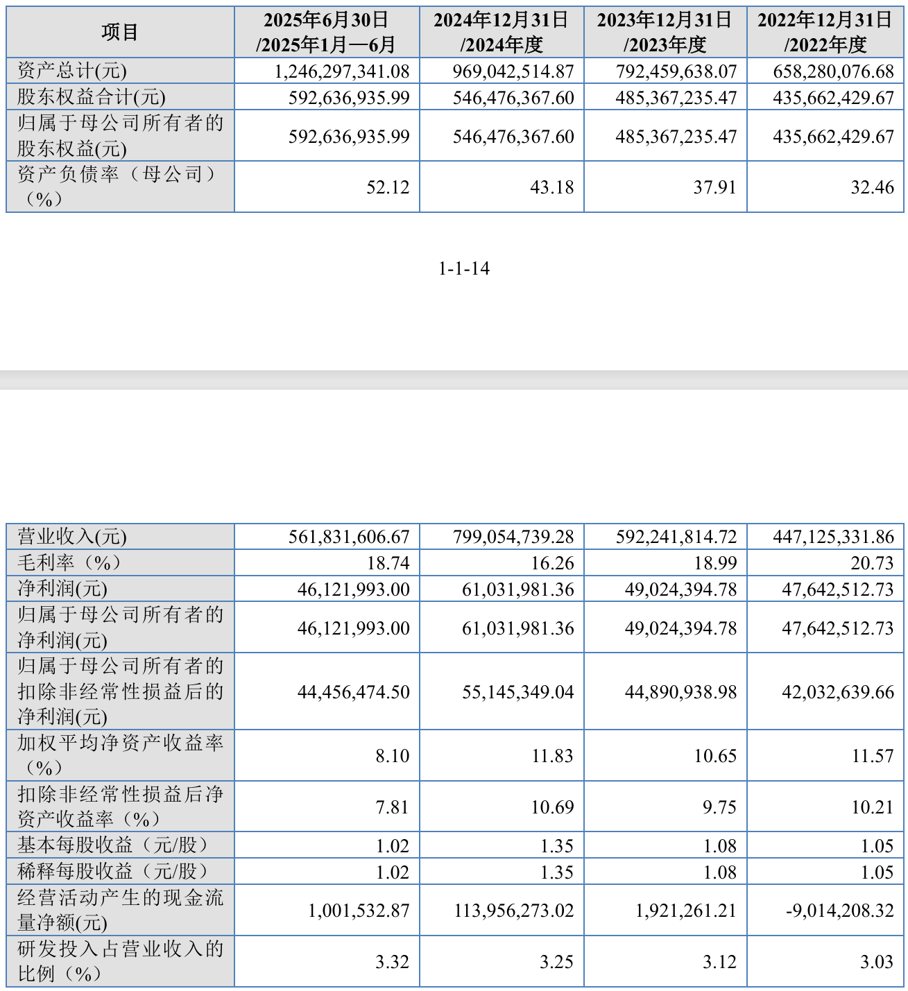 招股说明书申报稿及首轮问询回复显示,定西高强的营收从2022年的4.47亿元逐步升至2025年上半年的5.62亿元,归母净利润相应增长。2025年上半年营收和利润同比增幅明显。