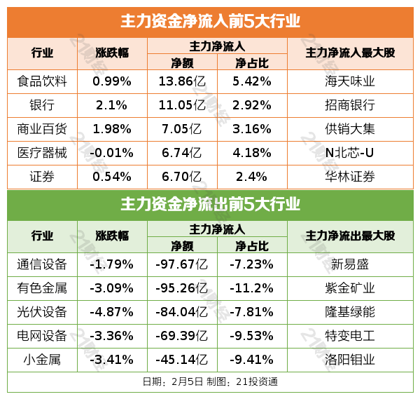 盘面上,全市场超3700只个股下跌。从板块来看,大消费板块大涨,食品饮料、零售、影视院线、旅游酒店方向轮番活跃,大金融板块午后走强,商业航天概念局部活跃,算力租赁概念回暖。下跌方面,有色金属、电网设备、油气等板块跌幅居前。其中贵金属概念集体大跌。