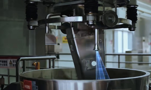 再次探访国台智能酿造工厂,撒贝宁又一次被国台数智化酿造震撼:“比如智能上甑和数智勾调,机器人用红外线探头当‘眼睛’,实时看着蒸汽分布区域,用机器手精准压醅;运用大数据分析和智能算法,就能实现勾调方案的科学化与最优化。”撒贝宁向大家介绍智能酿造车间的神奇之处。