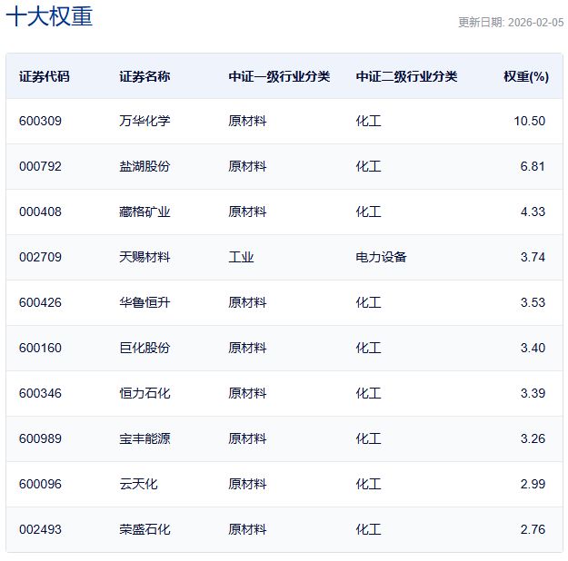 中证细分化工产业主题指数主要权重股
