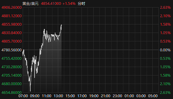 国际现货黄金站上4850美元/盎司关口