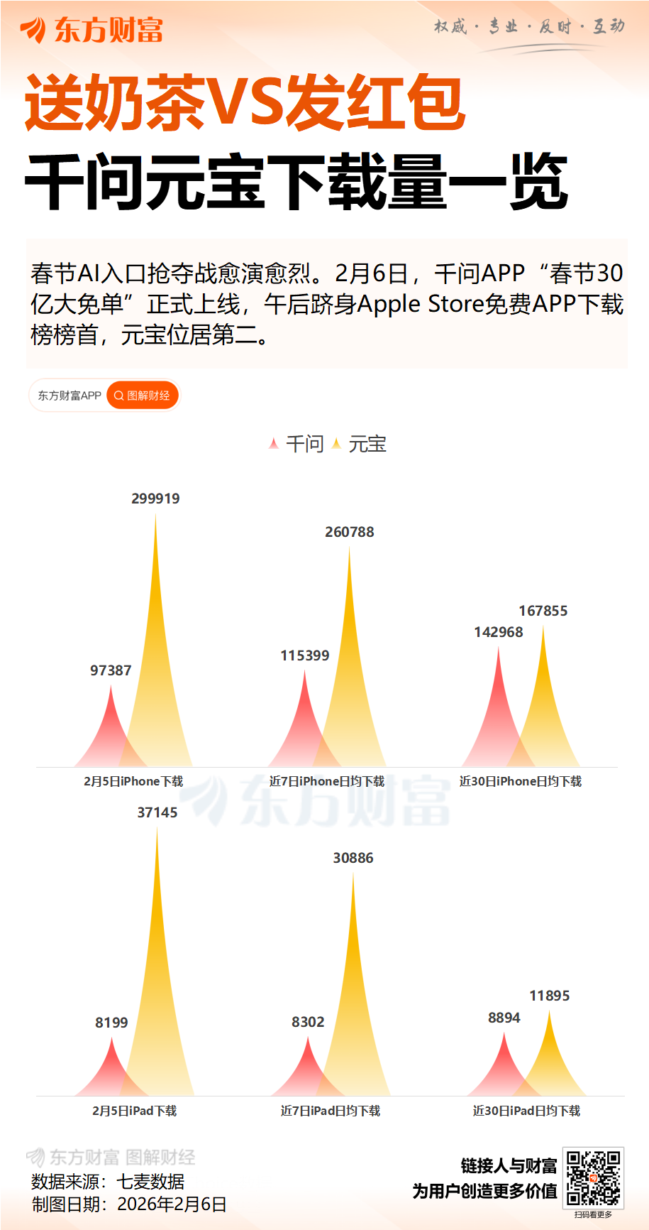送奶茶VS发红包 一图速览千问、元宝下载量