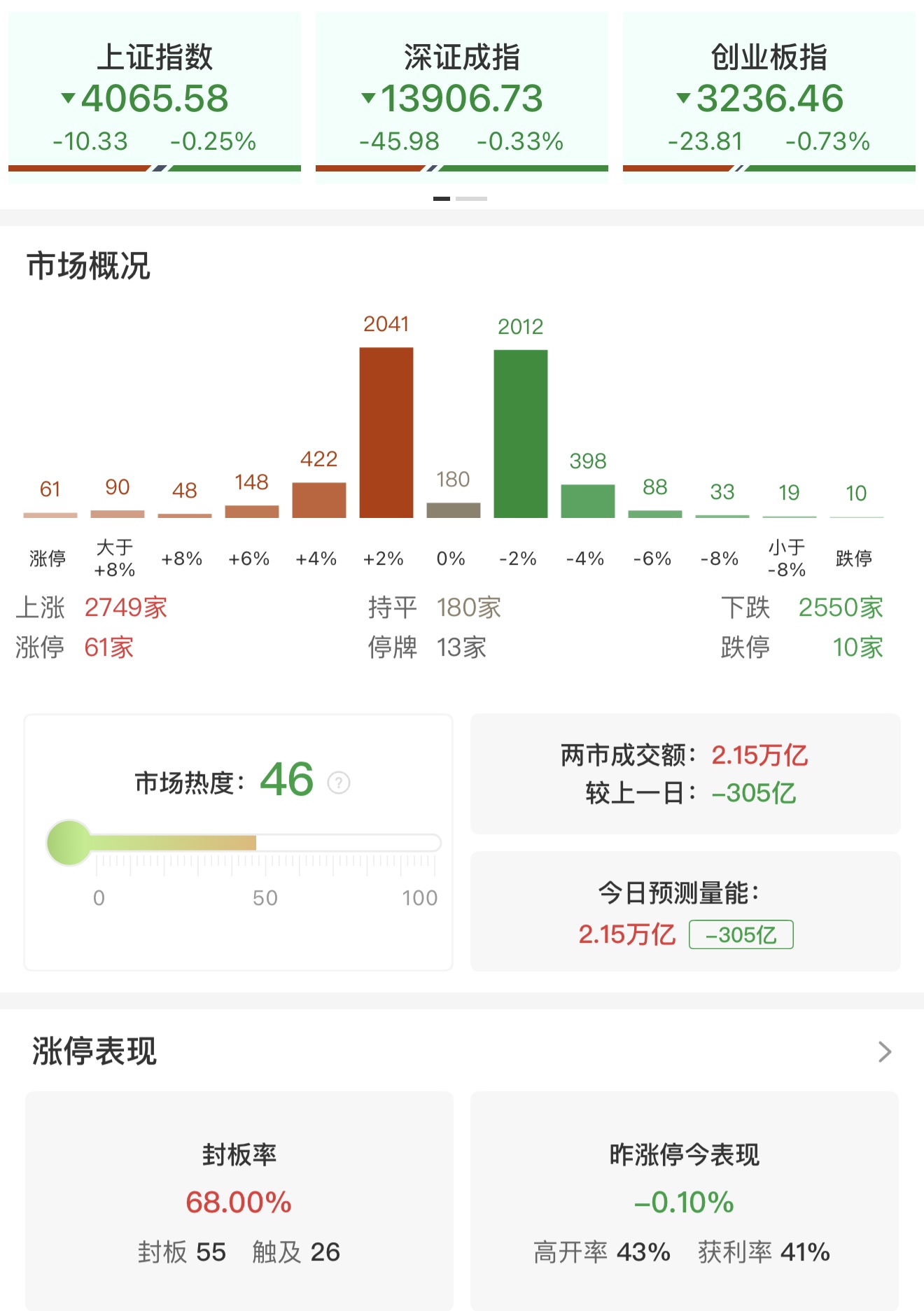 收评:创业板指冲高回落跌0.73% 油气、化工板块全线走强