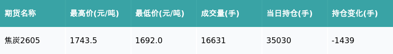 南财智讯2月6日电,盘后期货数据显示,大连商品交易所的焦炭主力合约收跌2.64%,收盘报1698.5元/吨,日内资金流出1.55亿元。其他相关指标见下表: