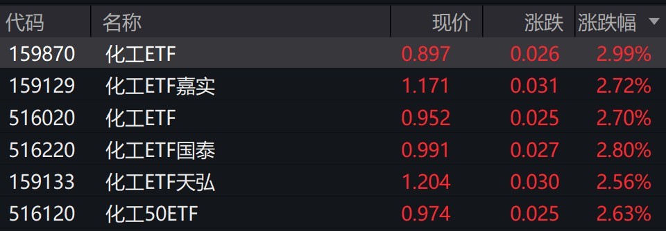 化工概念股走强,万华化学、天赐材料、巨化股份涨超4%,华鲁恒升、云天化涨超3%。