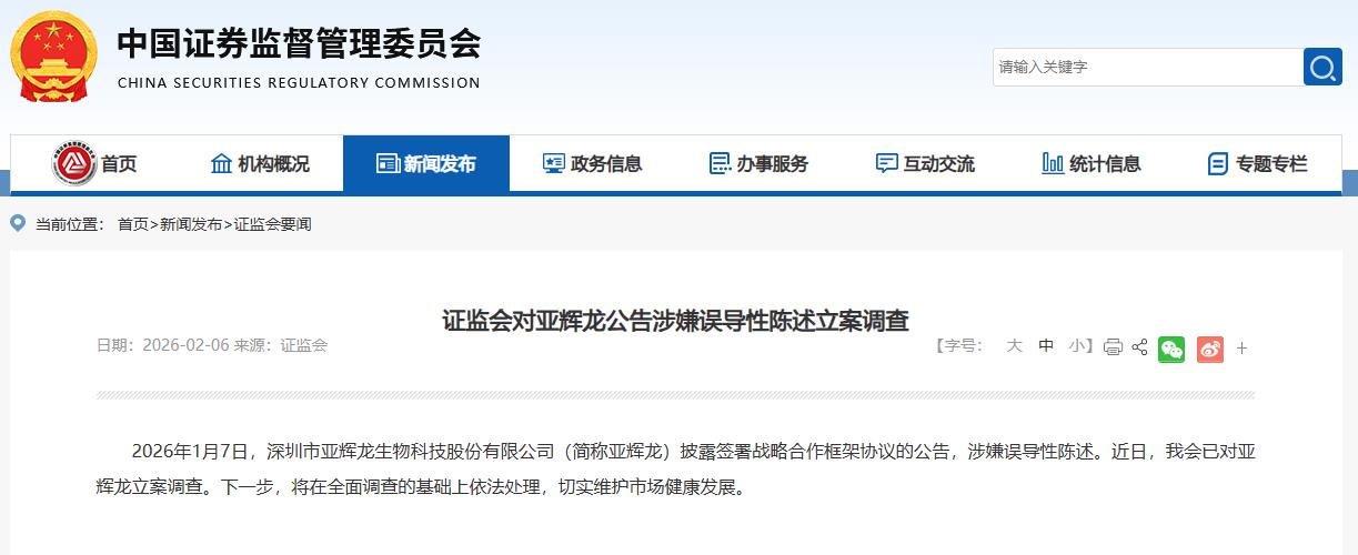 证监会对亚辉龙公告涉嫌误导性陈述立案调查