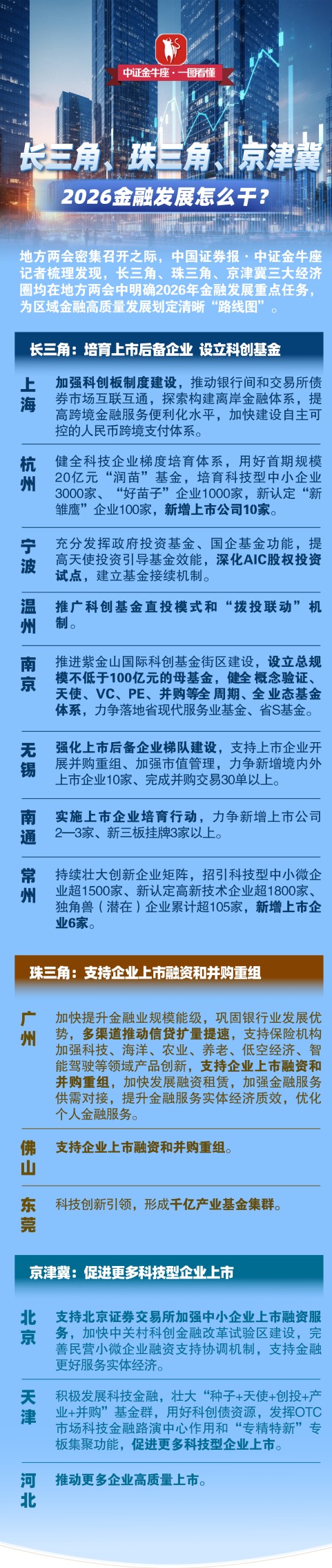 【一图看懂】长三角、珠三角、京津冀2026金融发展怎么干?
