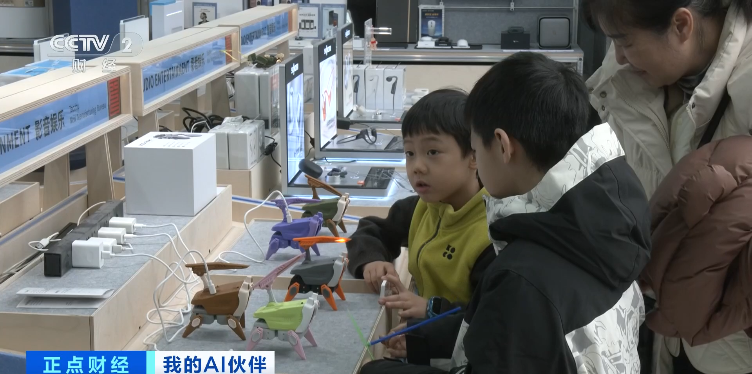 在北京一家AI产品集合店里,二十多款主打亲子教育和情绪陪伴功能的陪伴机器人,吸引了不少家长带着孩子前来体验、购买。